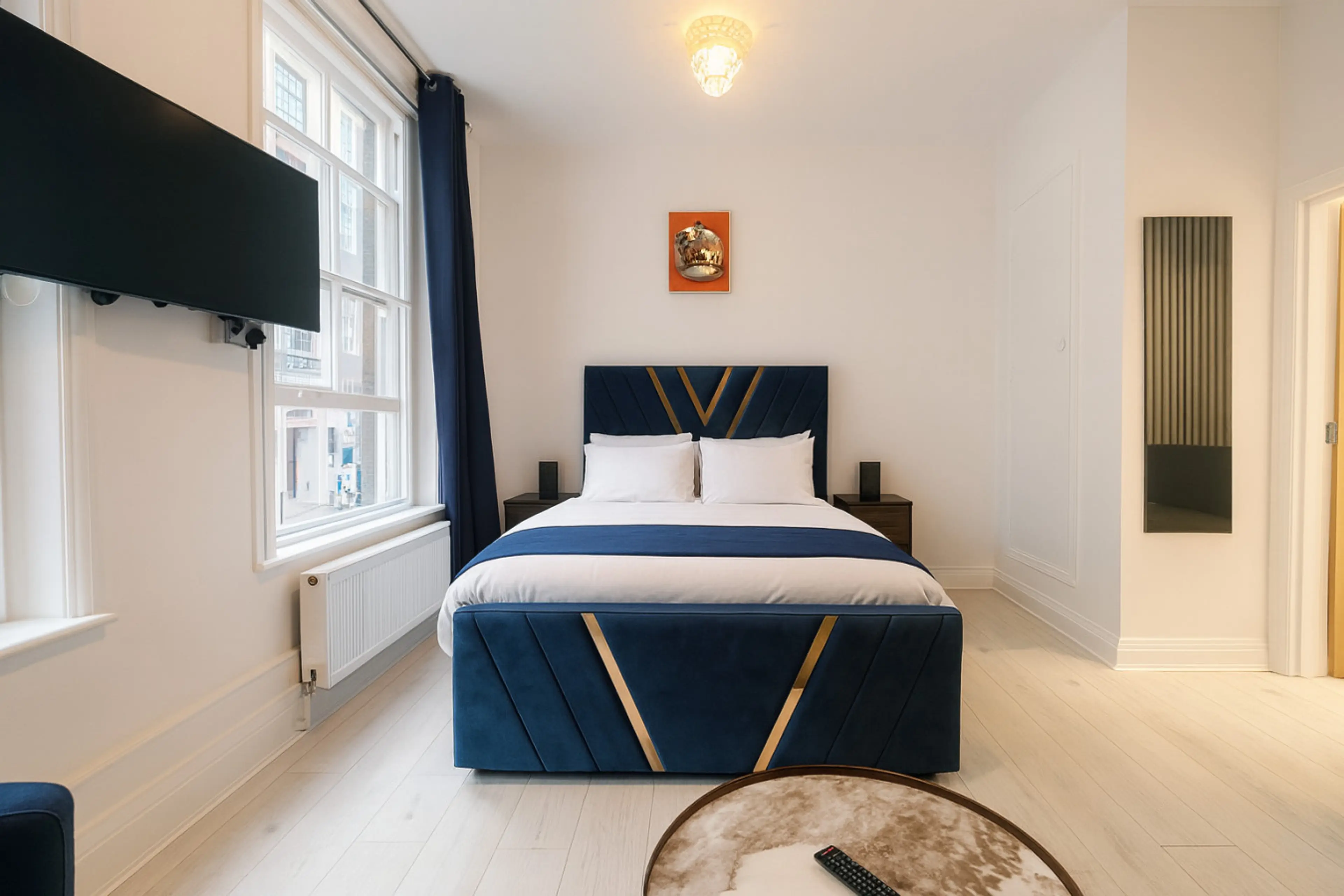 This stylish 1st floor studio apartment on Wardour Street puts you right in the centre of London’s most vibrant neighbourhood. Comfortably sleeps up to 3 guests, with a king-size bed and a sofa bed. There’s a separate open-plan kitchen equipped with everything you need for longer or shorter stays — ...