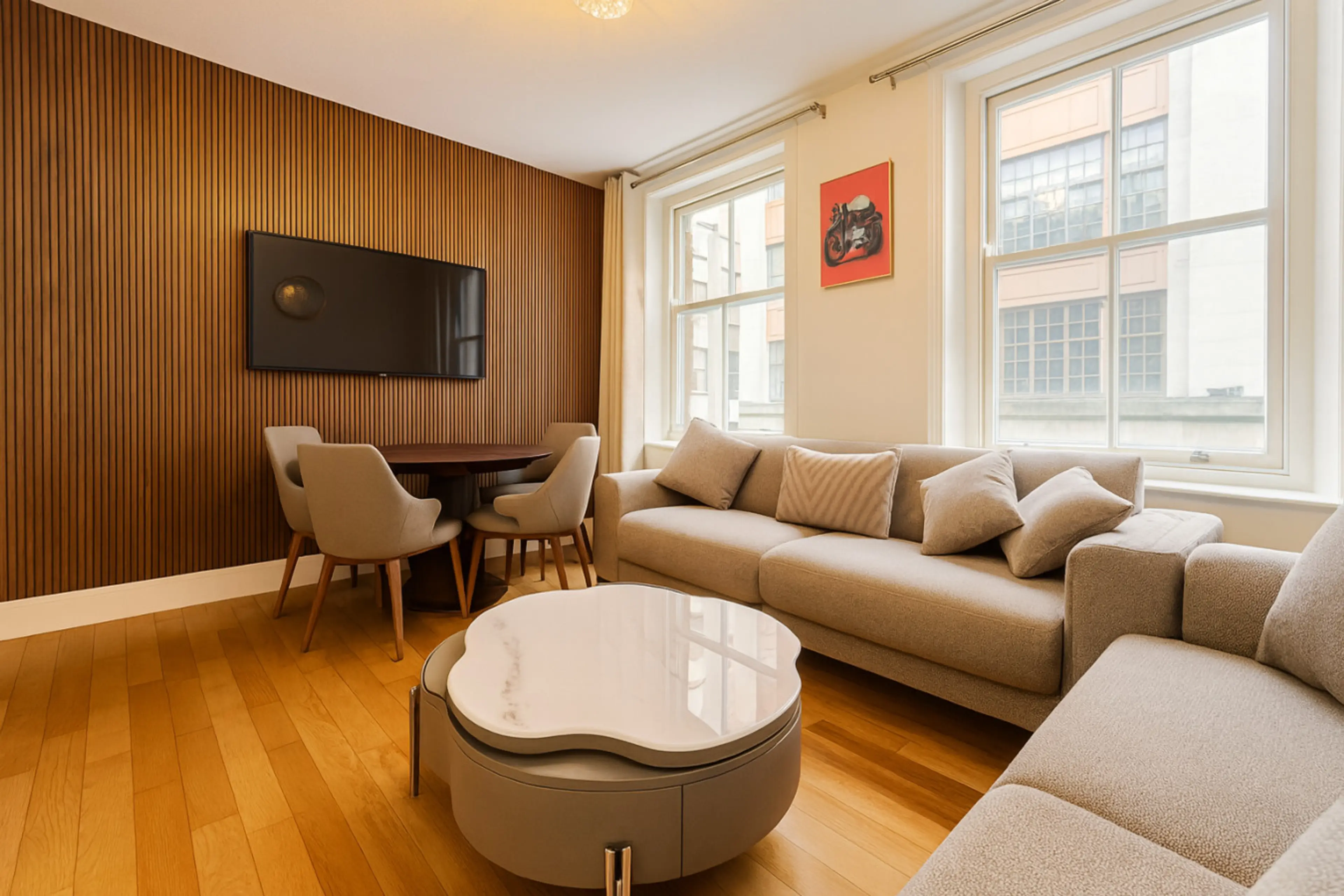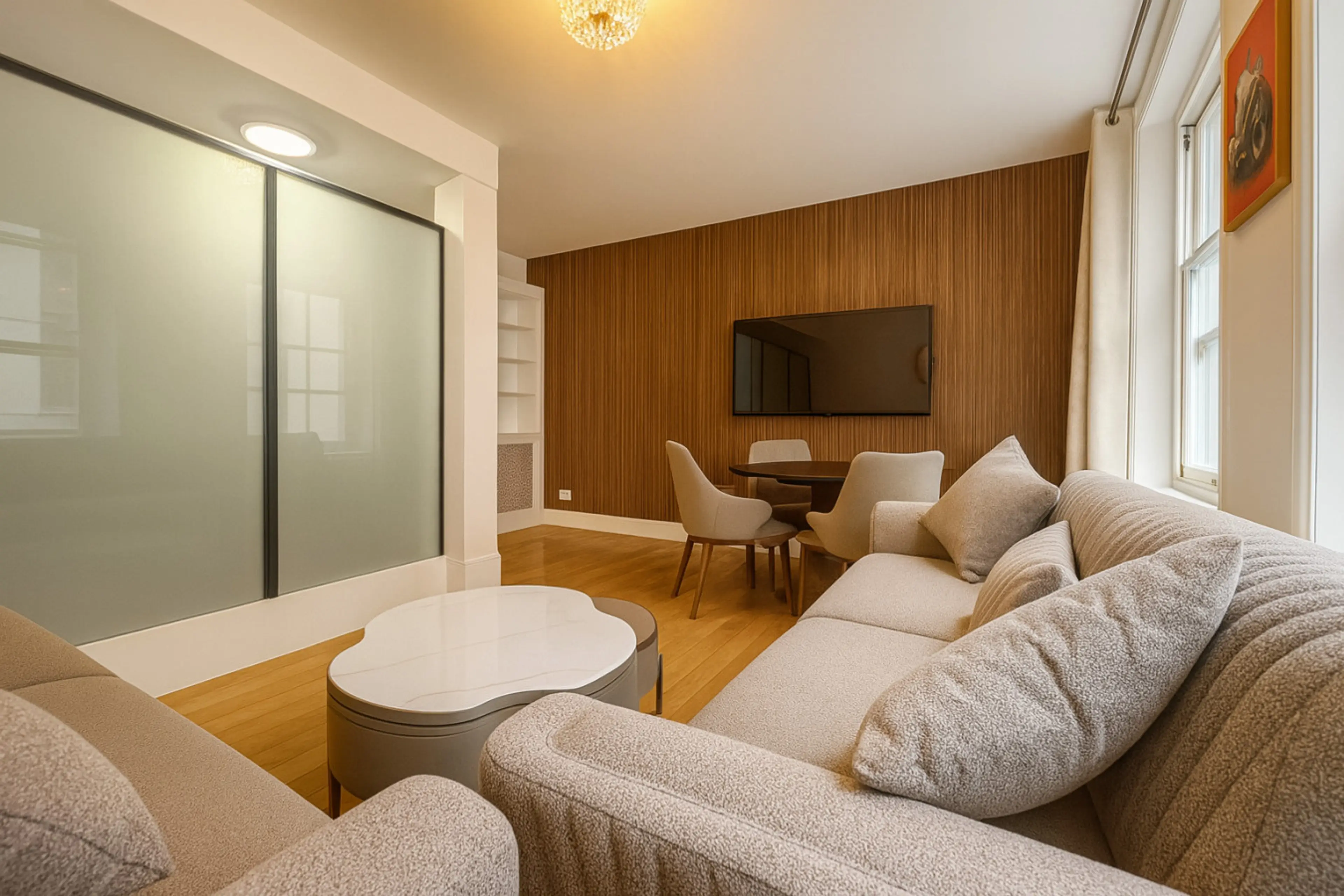 Stay in the heart of Soho on Wardour Street! This 2nd-floor 1-bedroom apartment (no elevator) sleeps up to 4 guests with a king bed and two single sofa beds. Enjoy a separate fully equipped kitchen with washing machine, oven, hob, fridge/freezer. A dining area and day porter add comfort and convenie...