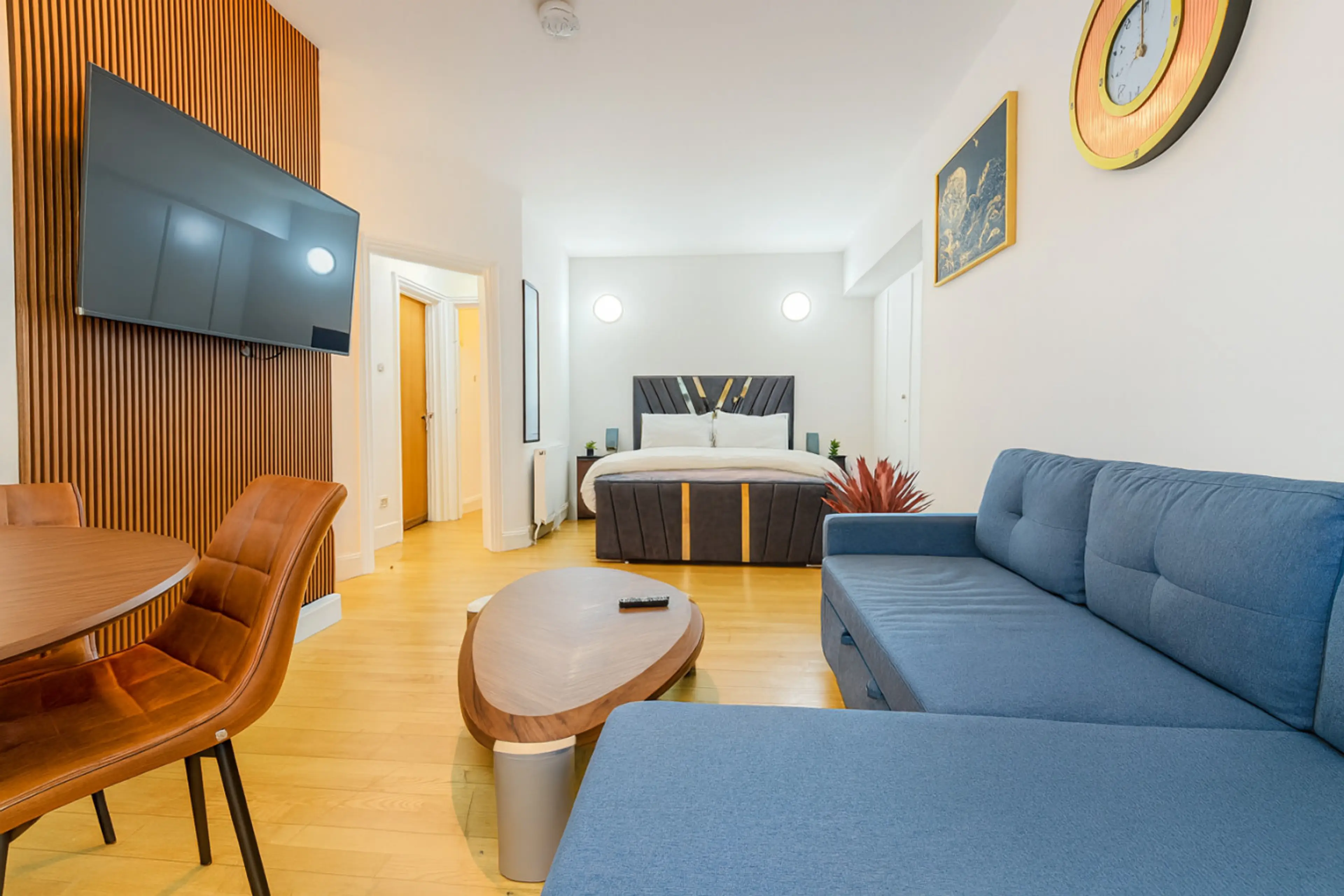 Welcome to this modern studio apartment located on the 2nd floor in the heart of Soho, one of London’s most vibrant and iconic neighbourhoods. The studio is thoughtfully laid out and comfortably sleeps up to 4 guests, featuring a king-size bed and a double sofa bed, making it ideal for couples, fam...