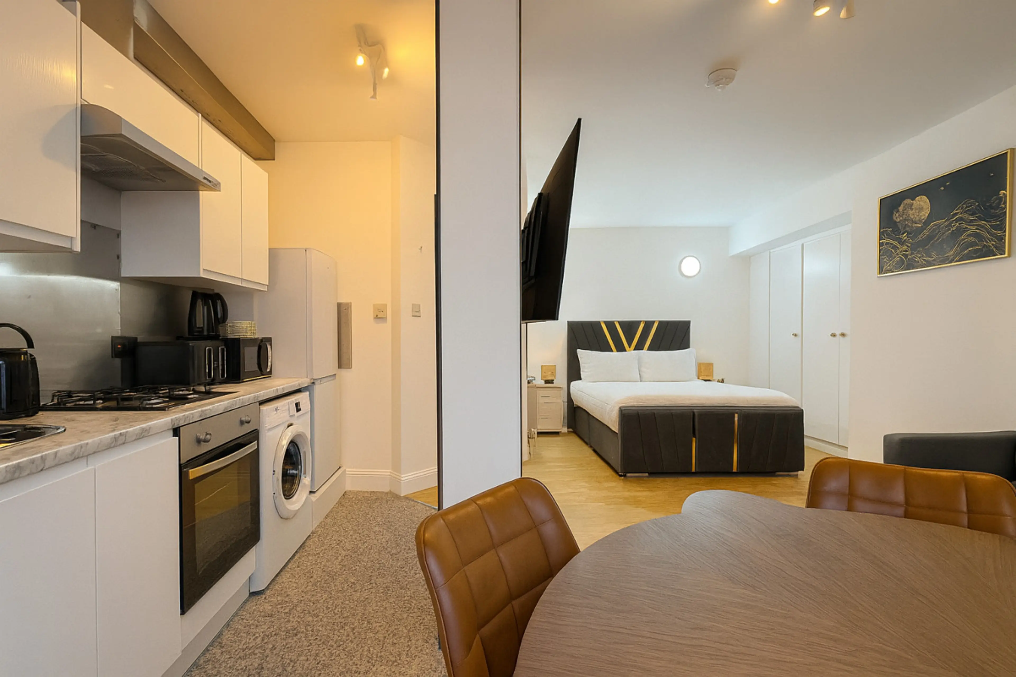 Welcome to this modern studio apartment located on the 2nd floor in the heart of Soho, one of London’s most vibrant and iconic neighbourhoods. The studio is thoughtfully laid out and comfortably sleeps up to 4 guests, featuring a king-size bed and a double sofa bed, making it ideal for couples, fam...